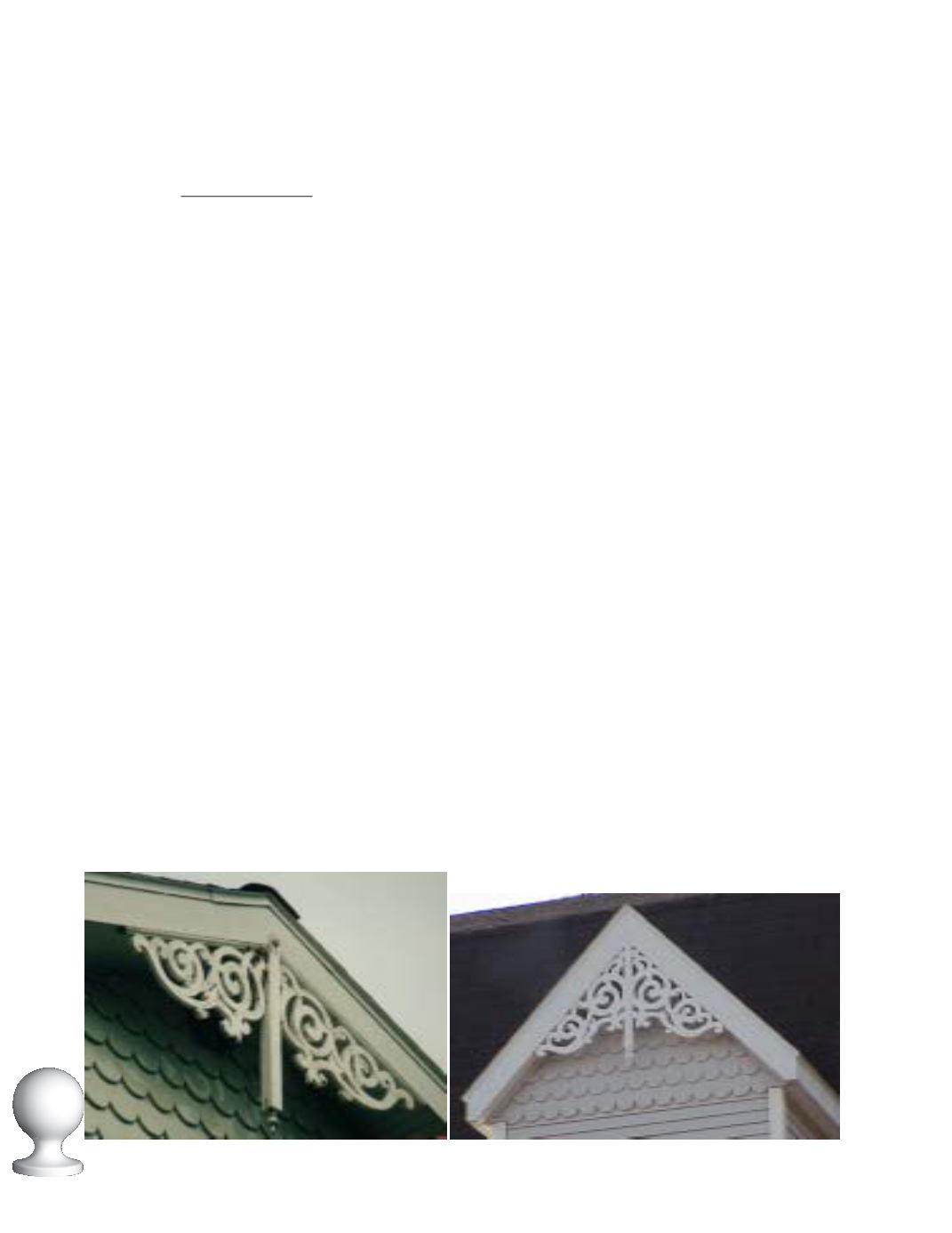 Shown below are two photos of gable decorations. The one on the left is wood. It had been up for