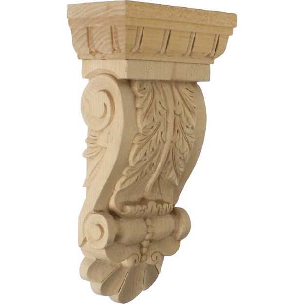 5 1/8"W x 2 3/4"D x 9 3/4"H Thin Flowing Acanthus Corbel, Alder