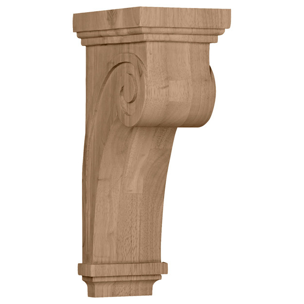 5 1/2"W x 8 1/4"D x 16"H Scroll Corbel, Red Oak