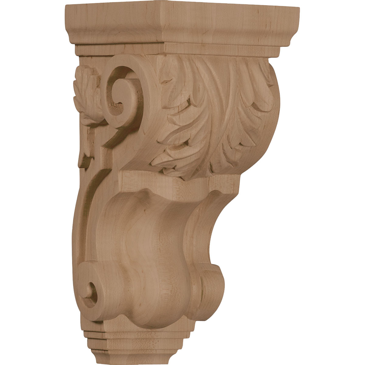 - 4 1/2"W x 5"D x 10"H Medium Traditional Acanthus Corbel, Mahogany